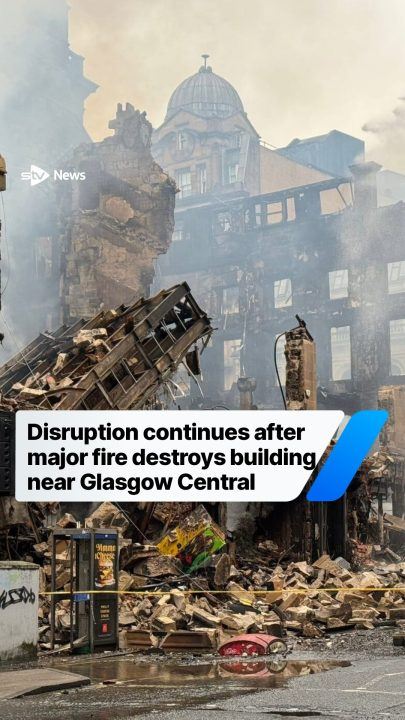 Disruption continues after major fire destroys building near Glasgow Central