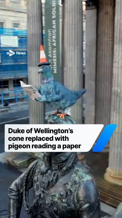 Duke of Wellington’s cone replaced with pigeon reading a paper