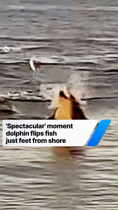 ‘Spectacular’ moment dolphin flips fish just feet from shore