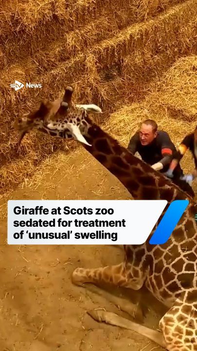 Watch giraffe at Scots zoo knocked out to receive procedure for ‘unusual’ swelling