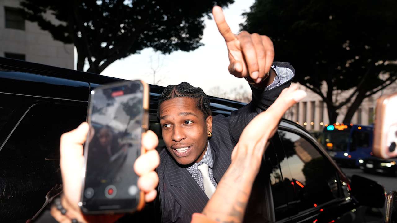 Rapper A$AP Rocky jumps into the court benches to hug partner Rihanna after not guilty verdict