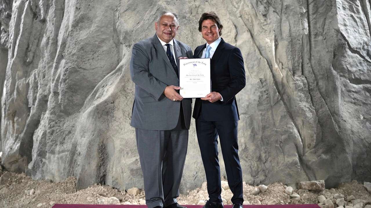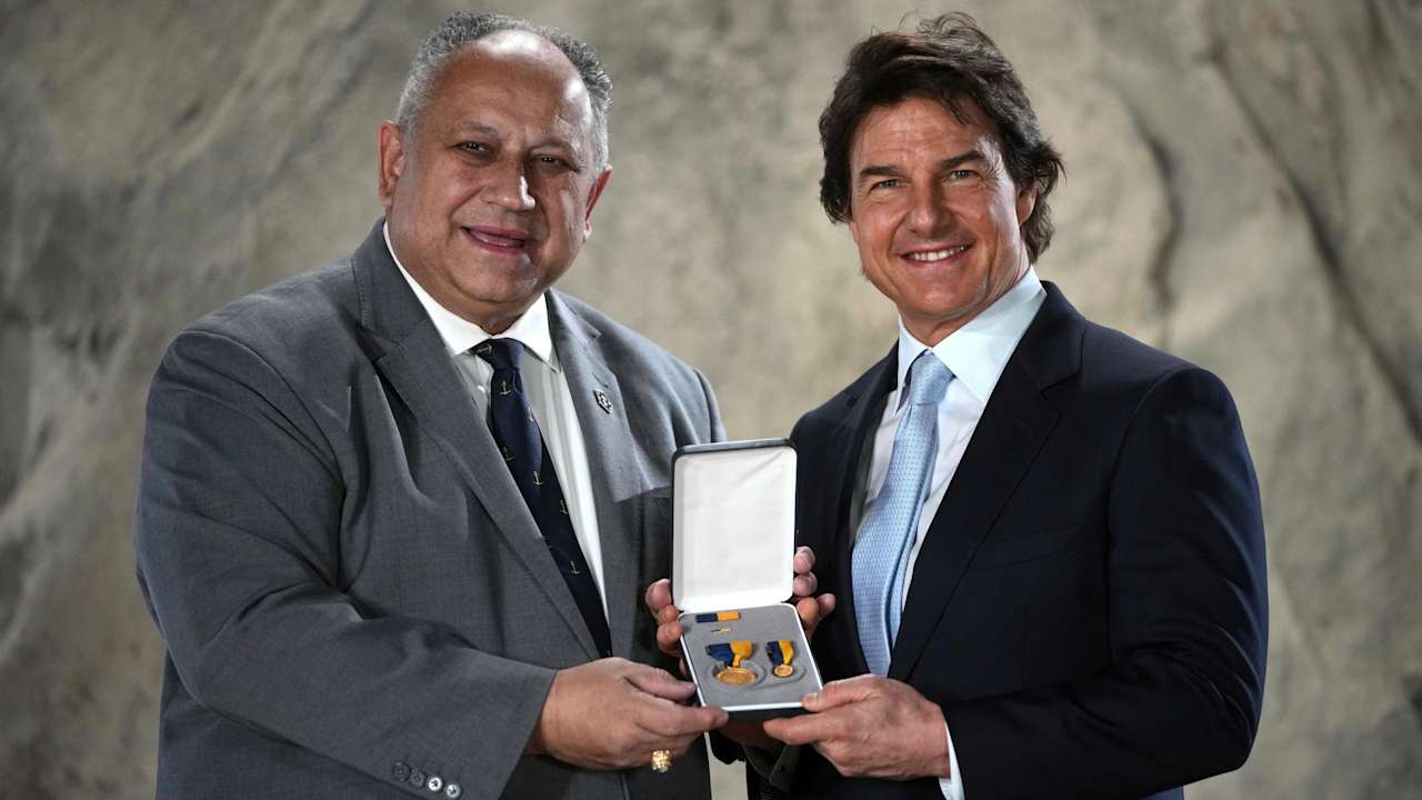 The Hollywood actor was awarded the US Navy’s top civilian honour for his “outstanding contributions” to the service through his role as Lieutenant Pete “Maverick” Mitchell in the film Top Gun.