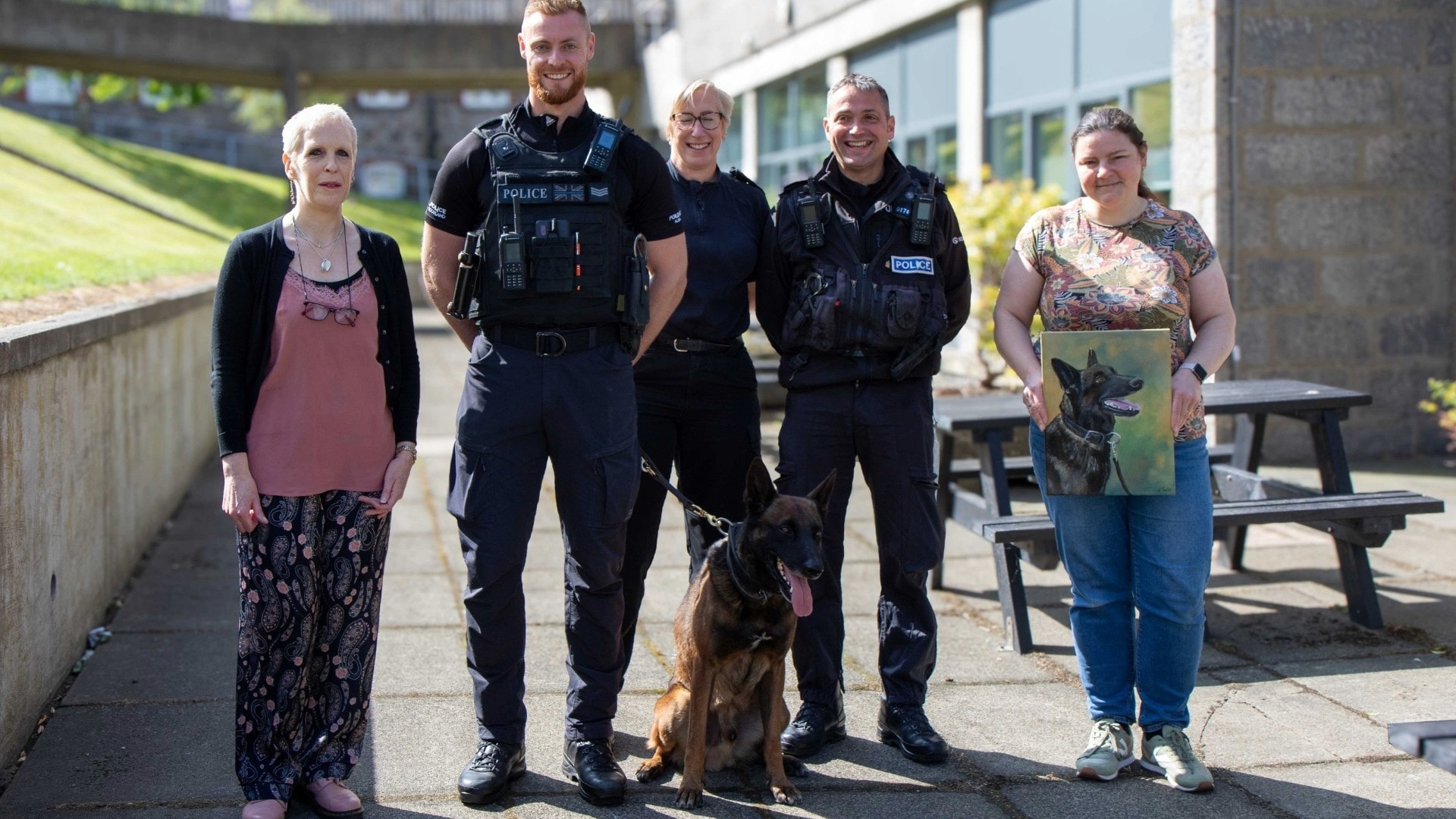 Earlier this year, North East Scotland College (NESCol) welcomed Zeus and his handler, sergeant Paul Wigley, to take part in an exciting initiative to honour his bravery.