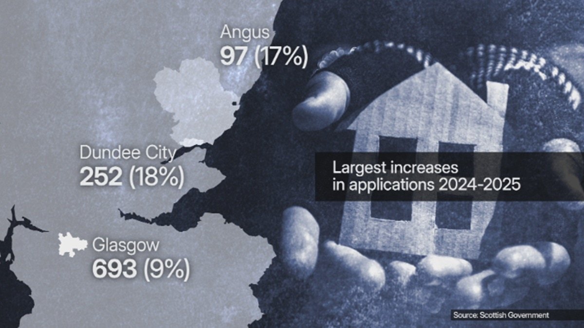 Dundee has seen the highest spike of homelessness applications per population in Scotland, with a rise of 18% recorded between 2024 and 2025.