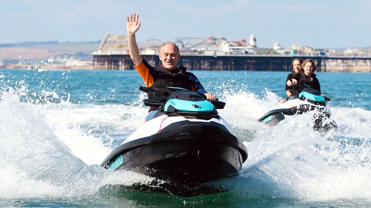 The Lib Dem leader arrived to the conference in Brighton by jet ski, continuing the stunts he became known for during the summer’s General Election campaign.