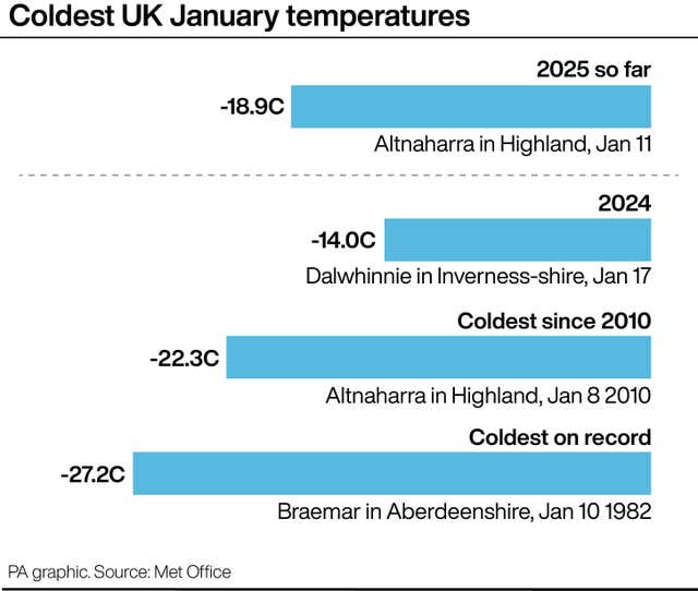 Temperatures plummeted to minus 18.9C on Saturday morning in Altnaharra, Scotland, and it was the UK’s coldest January temperature in 15 years.
