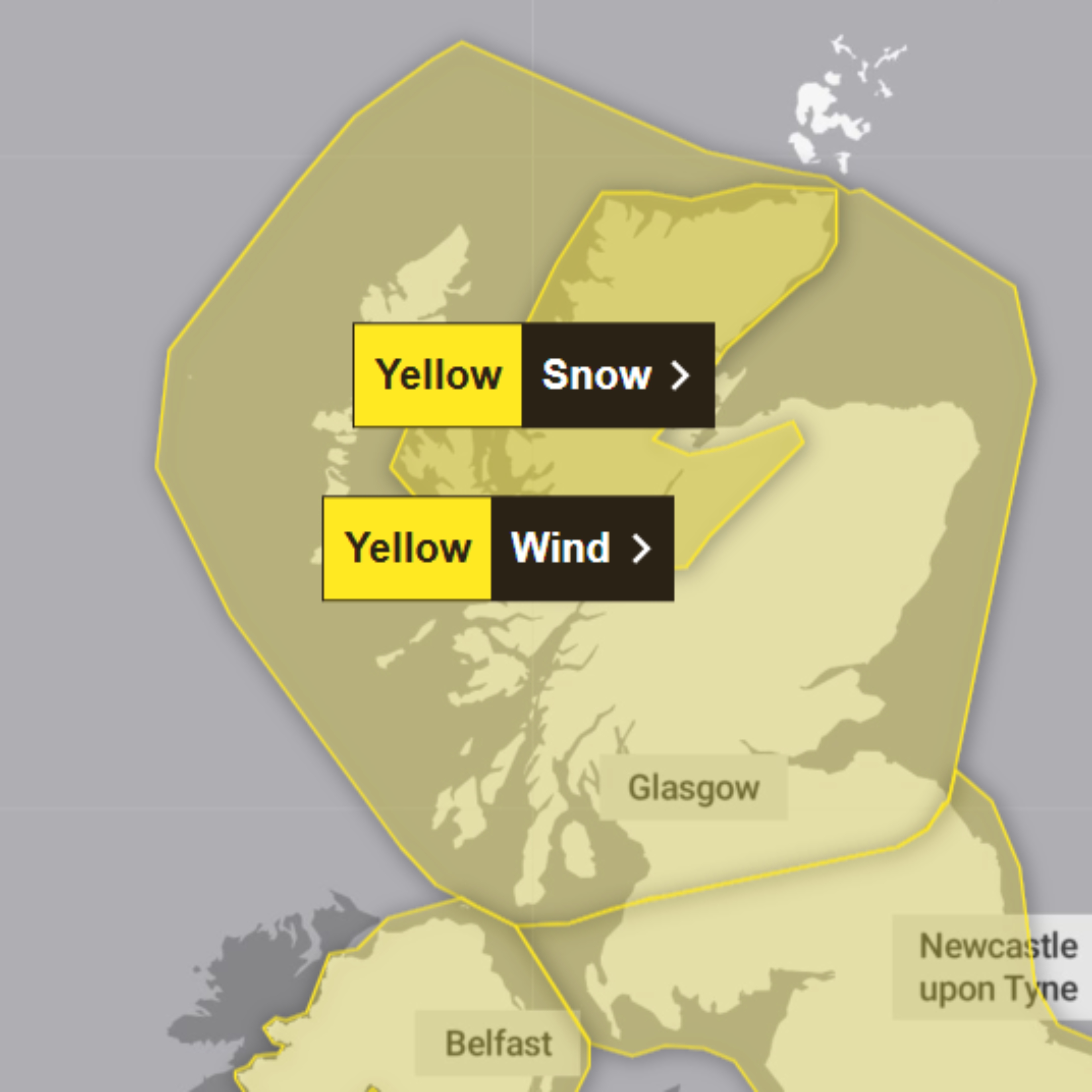 The Met Office has issued three yellow weather warnings for Scotland, with two covering severe winds and a third for heavy snow and blizzards.