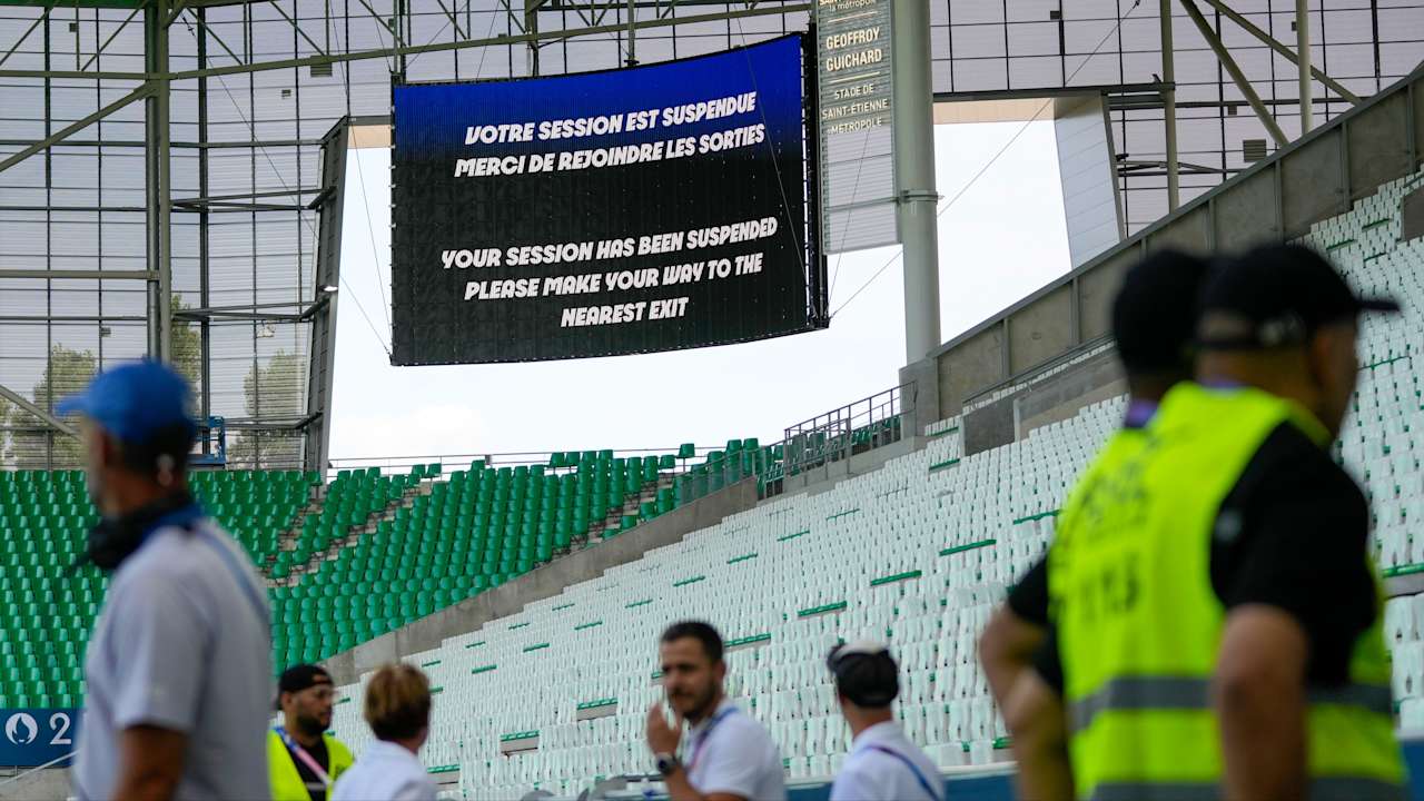 Video boards informed fans the match was suspended and they had to leave the stadium.