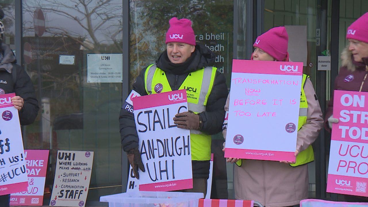 The first of four days of strikes is underway at the University of the Highlands and Islands’ headquarters in Inverness.