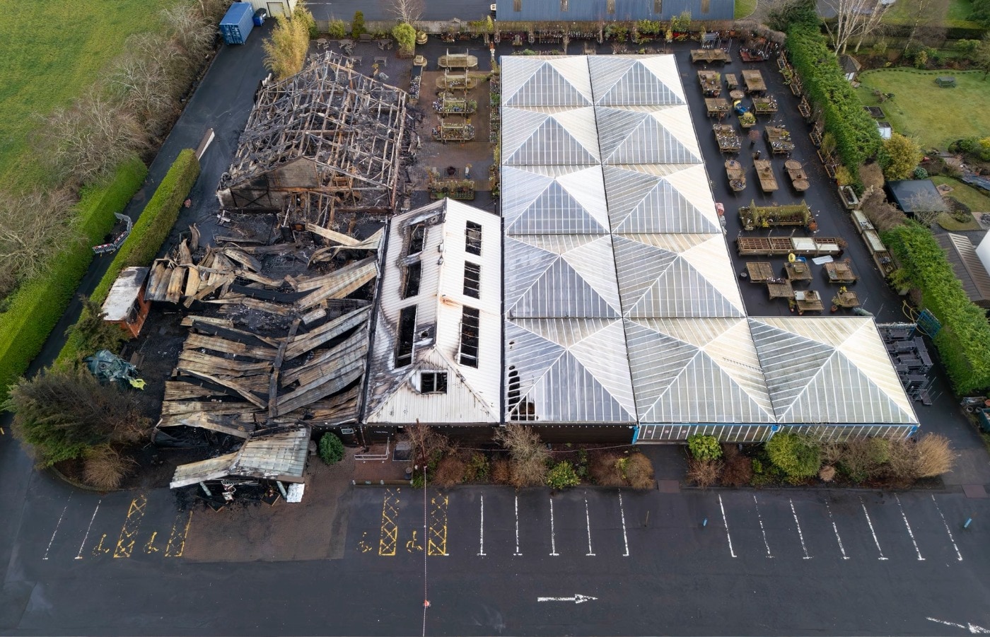 Drone images showing the aftermath of a devastating blaze that burned down a garden centre and cafe in Ayrshire have been shared with STV News.