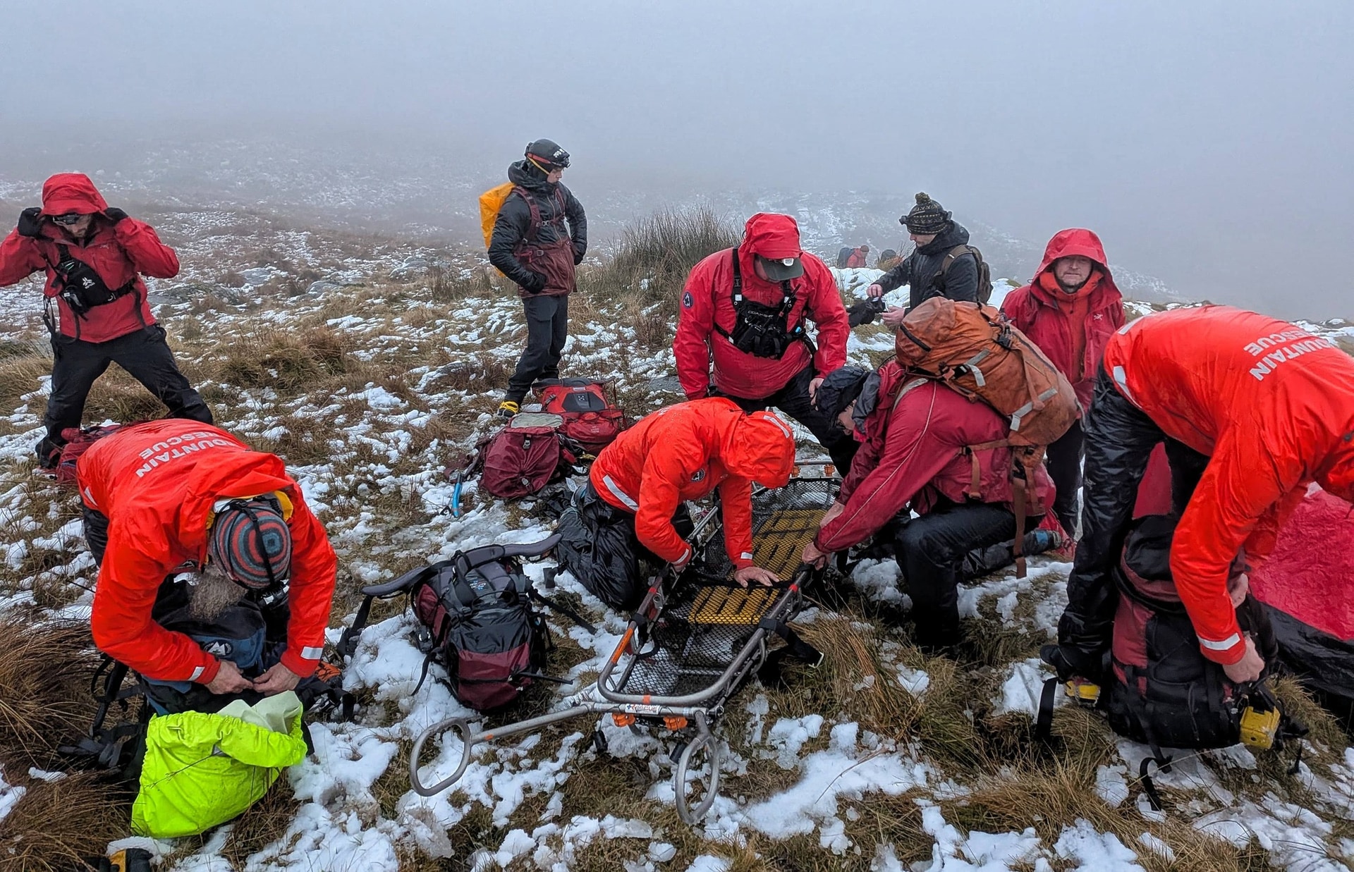 Rescuers assessed the casualty, administered pain relief, and then applied thermal packaging before stretchering them off the mountain.