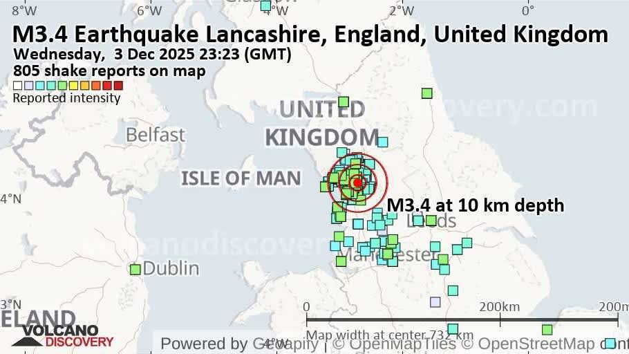 A 3.3-magnitude earthquake shook homes and woke people up in north-west England late on Wednesday night, the British Geological Survey (BGS) reported.