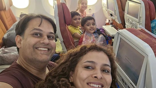 A final smiling selfie was taken by Dr Joshi showing the couple with their children on board the plane.