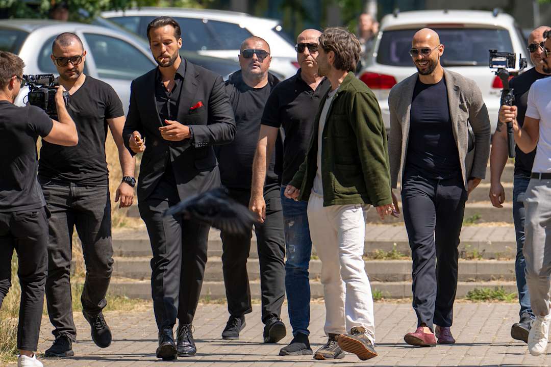 The controversial influencer, who denies the allegations, appeared in good spirits as he was photographed with his brother arriving at the Bucharest Tribunal.