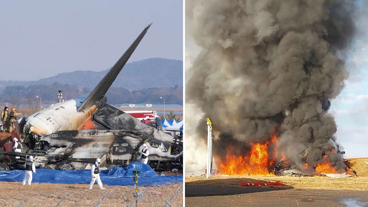 The Jeju Air jet’s landing gear seemingly failed to deploy when it tried to land at Muan International Airport on Sunday morning, crashing into a concrete fence at around 9am local time (12am GMT).
