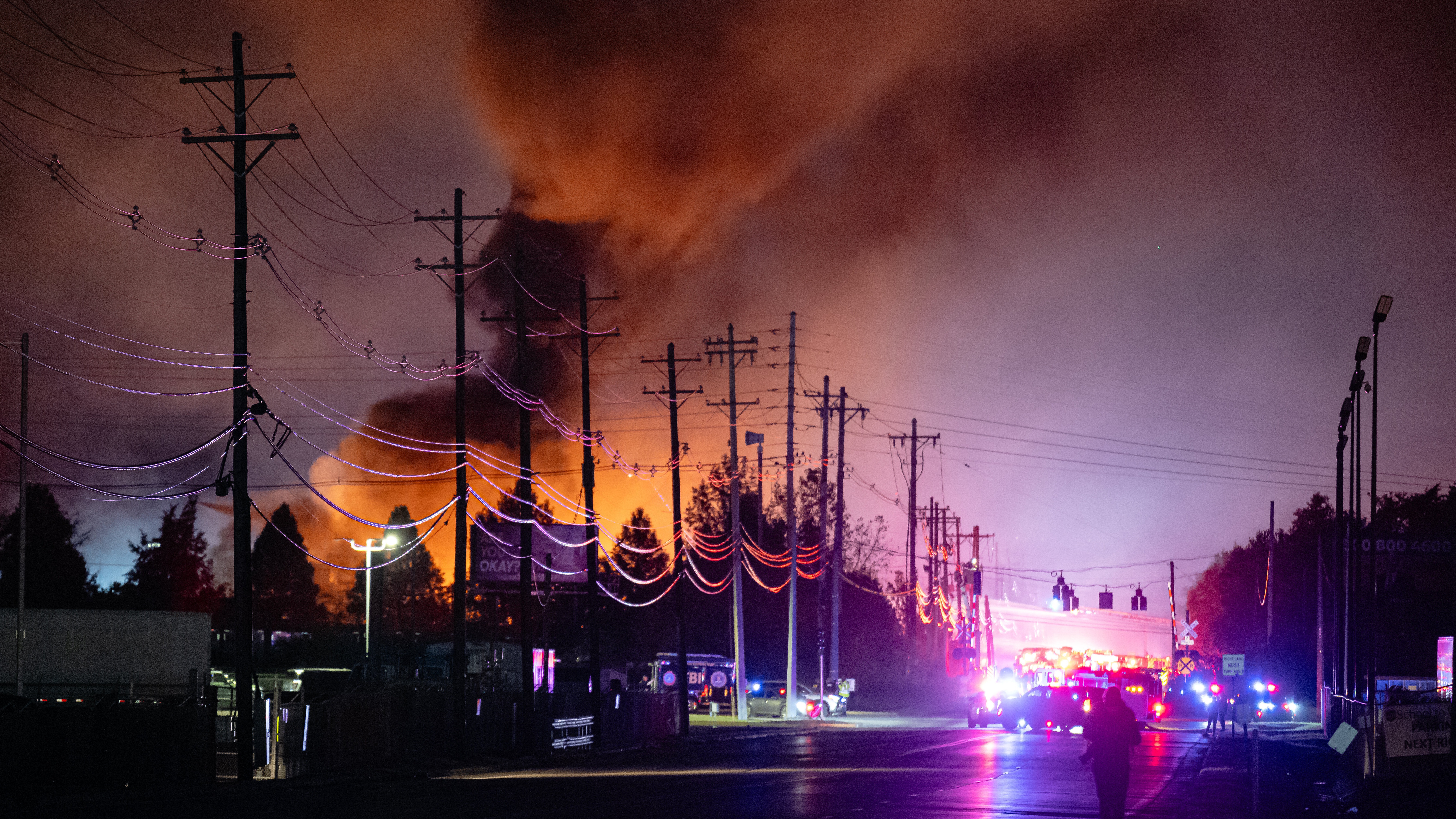 The governor said a business, Kentucky Petroleum Recycling, appeared to be “hit pretty directly,” and a nearby auto parts operation was also affected.