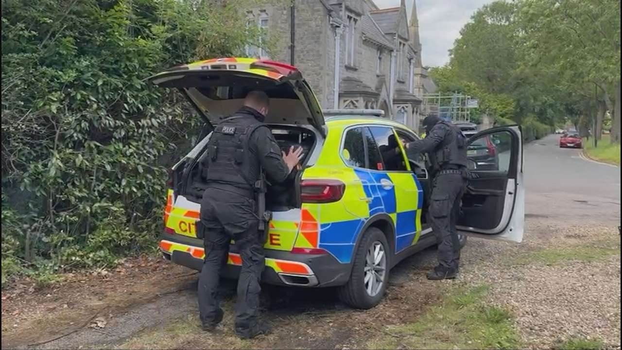 Other uniformed officers could also be seen patrolling the residential area around the cemetery.