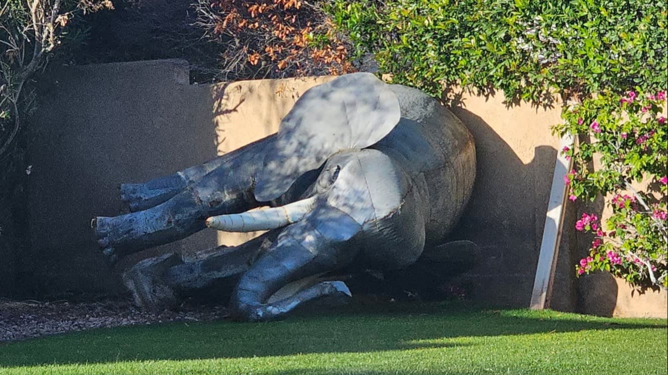 A California resident called police to report a ‘dead’ elephant in a garden, but it turned out to be just “a wind-toppled statue”.