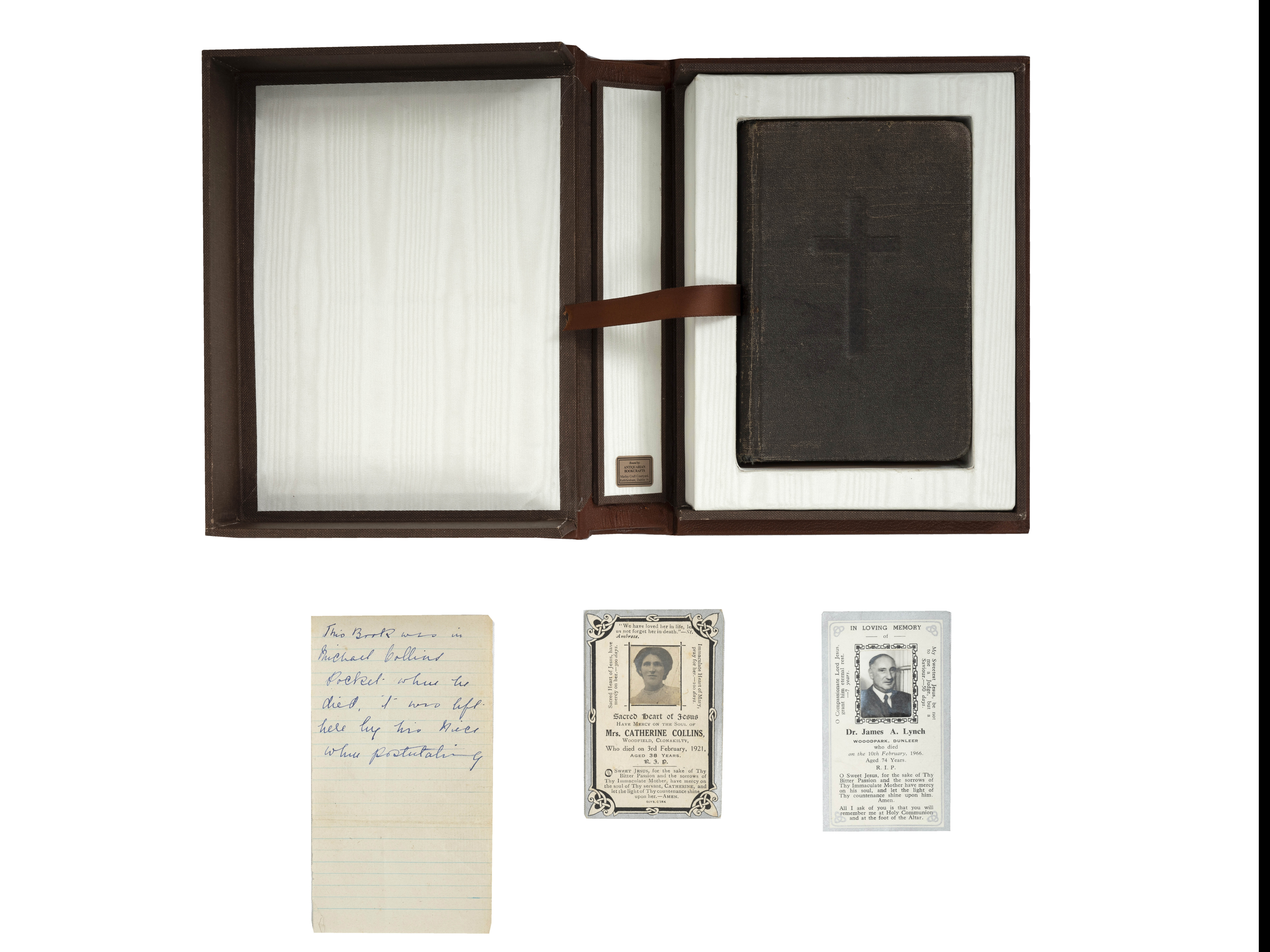 Following his assassination at Beal na Blath in Cork in 1922, the bible was passed to his niece, who in turn gave it to a Dr James A Lynch, after which it was recently acquired by the present owner.