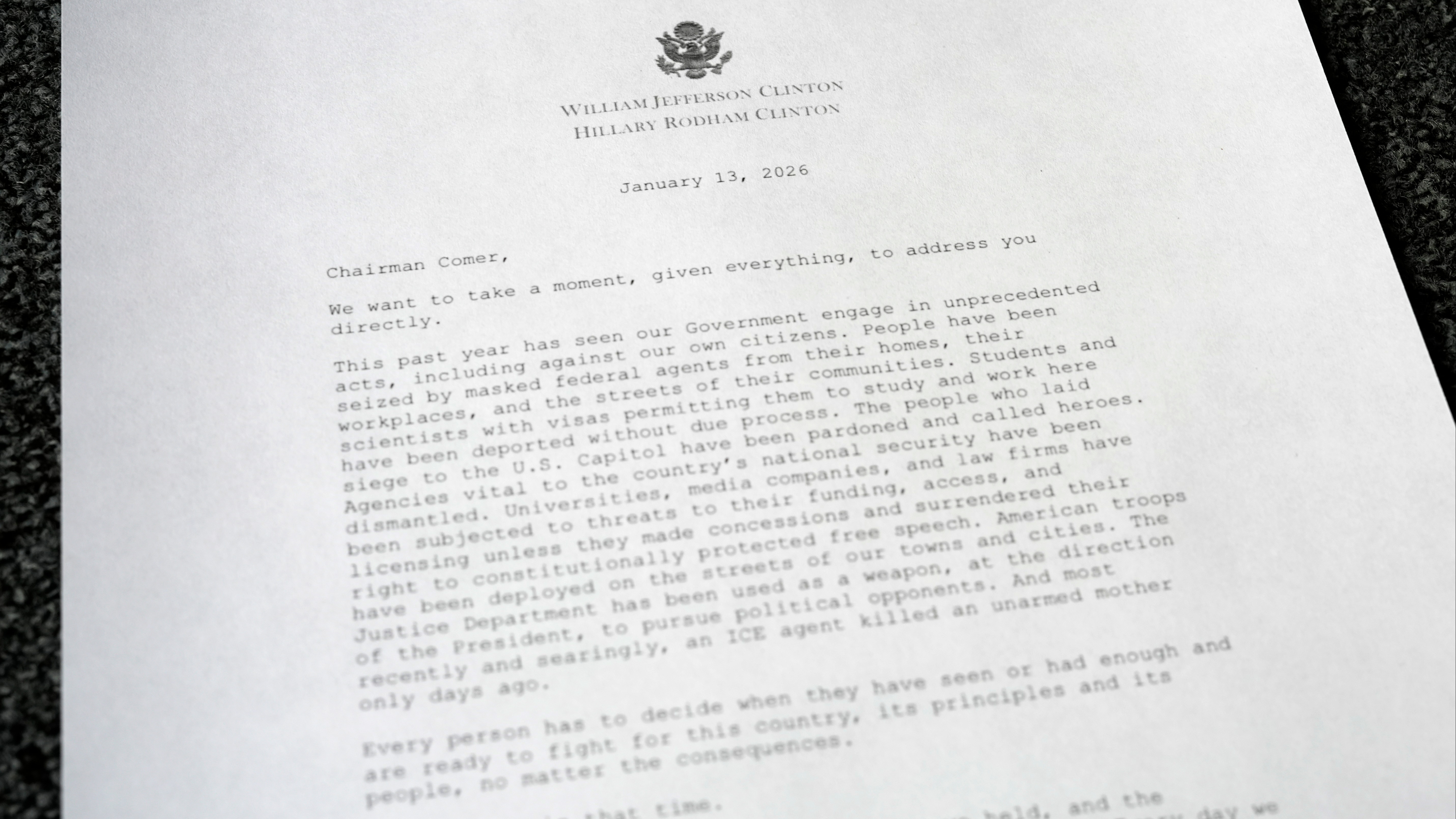 In a letter posted on social media, they described the House Oversight probe as “legally invalid” and said the chair of the House Oversight Committee, Republican James Comer, was on the cusp of pursuing a process “literally designed to result in our imprisonment”.