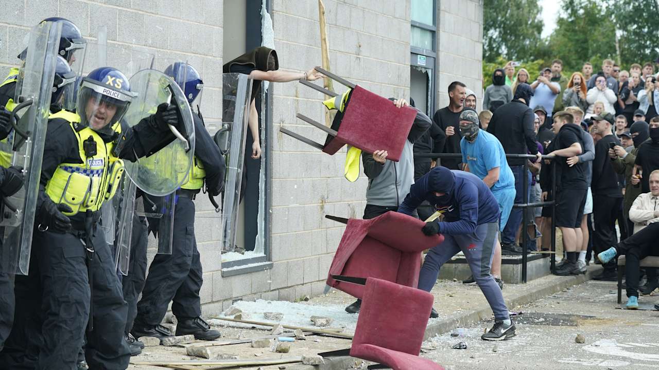 In Rotherham, anti-immigration rioters smashed the windows of the Holiday Inn Express before starting fires.