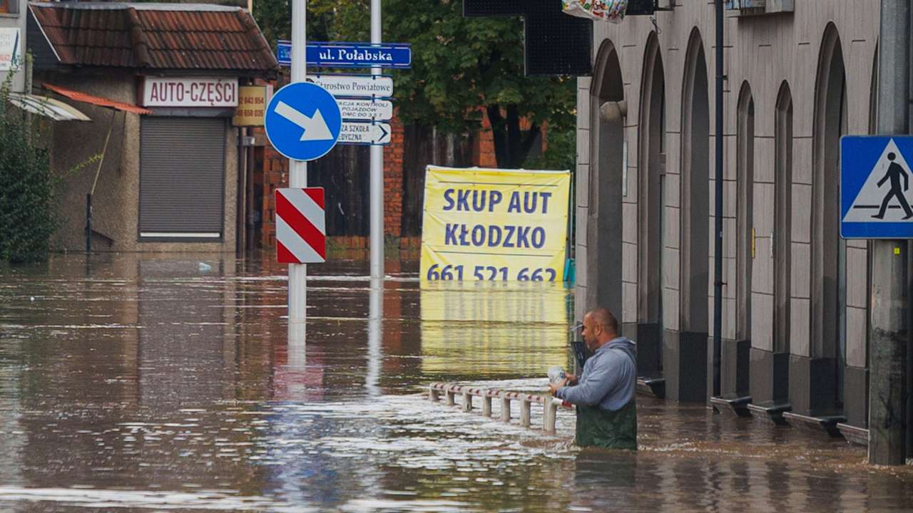In Poland, one person was presumed dead in floods in the southwest, Prime Minister Donald Tusk said Sunday.