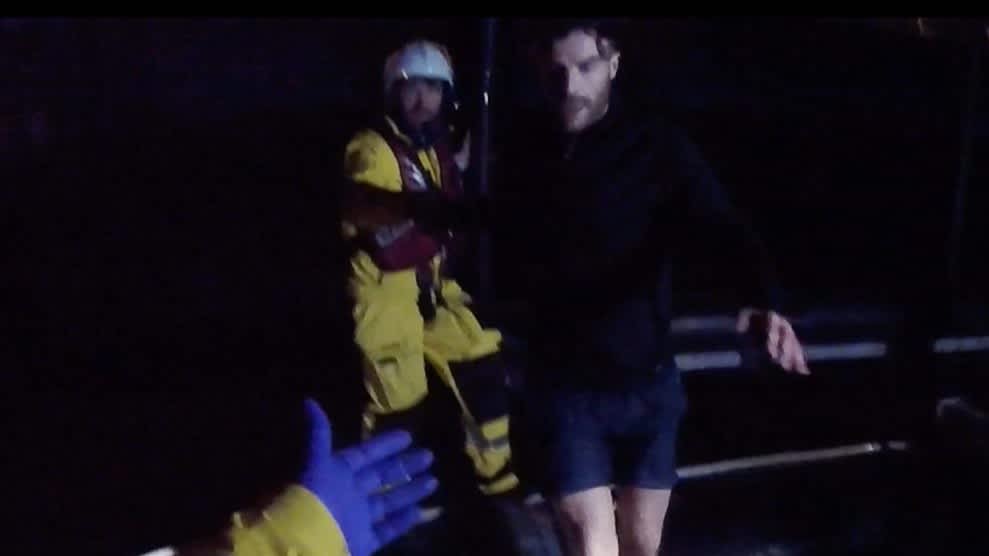 A video captured the incident, showing North being rescued by the RNLI and wrapped in blankets in near-pitch darkness.