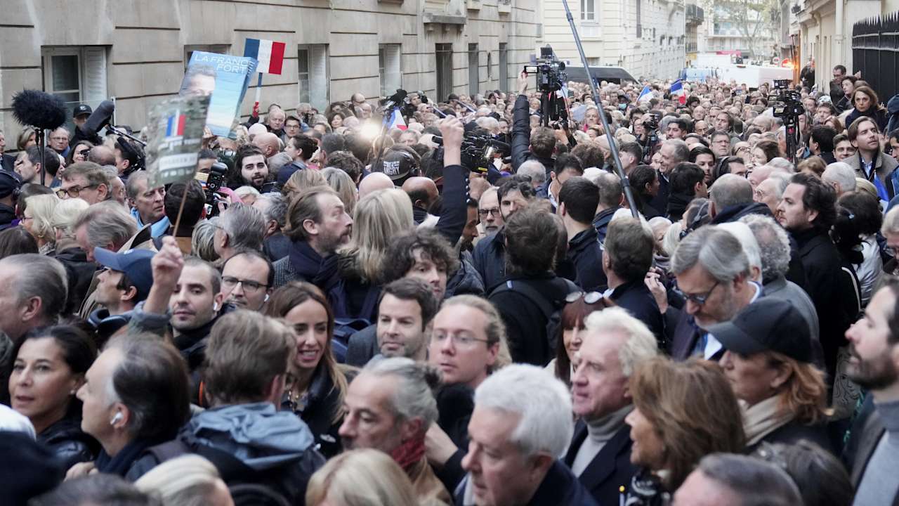Hundreds of supporters gathered in Sarkozy’s upscale Paris neighbourhood, applauding, chanting “Nicolas, Nicolas,” and singing the French national anthem.