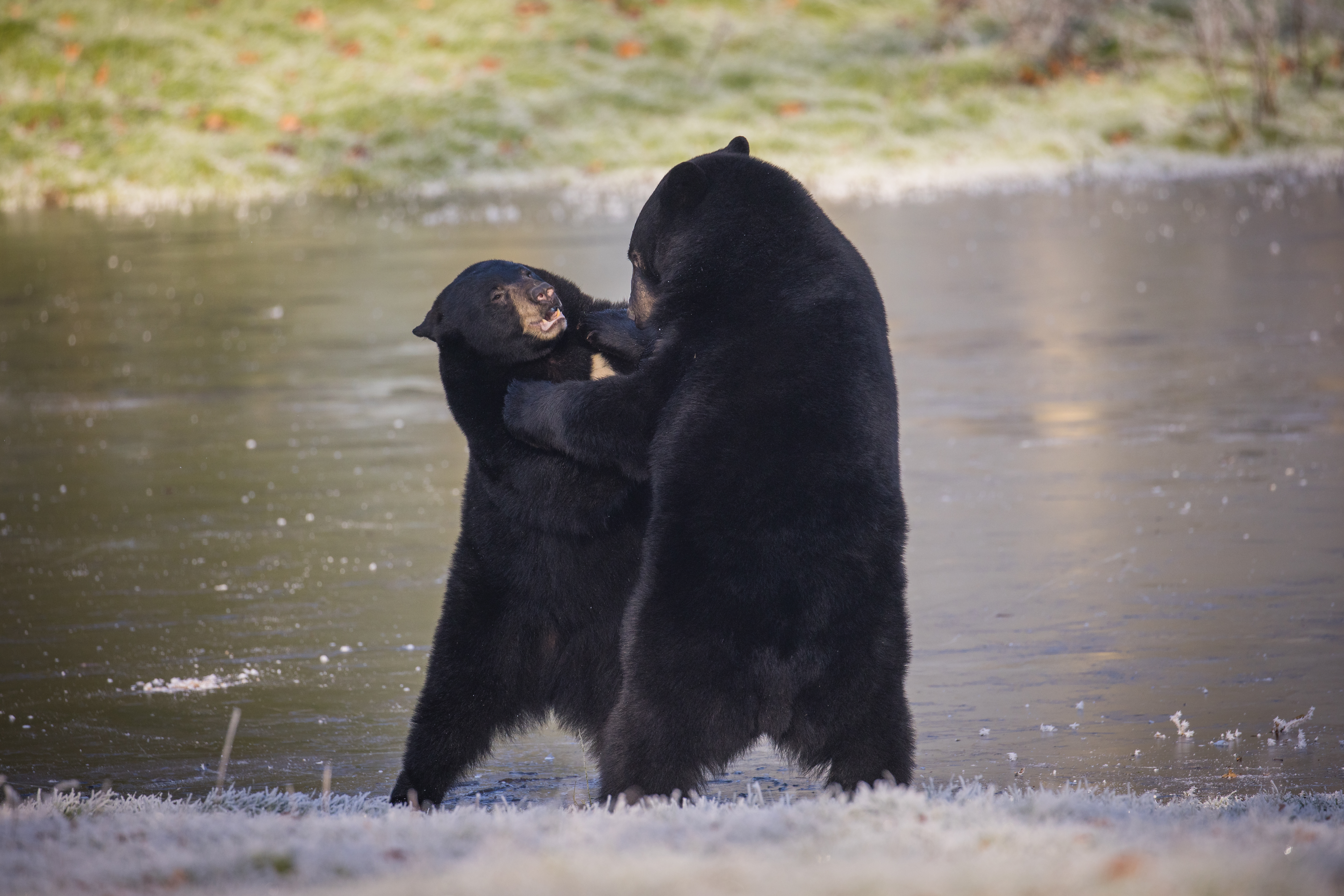Keepers at the park said the animals “had a unique reaction to the ice” while the young bears engaged in playful sparring and “took advantage of their opponents’ unsteady footing on the icy terrain”.