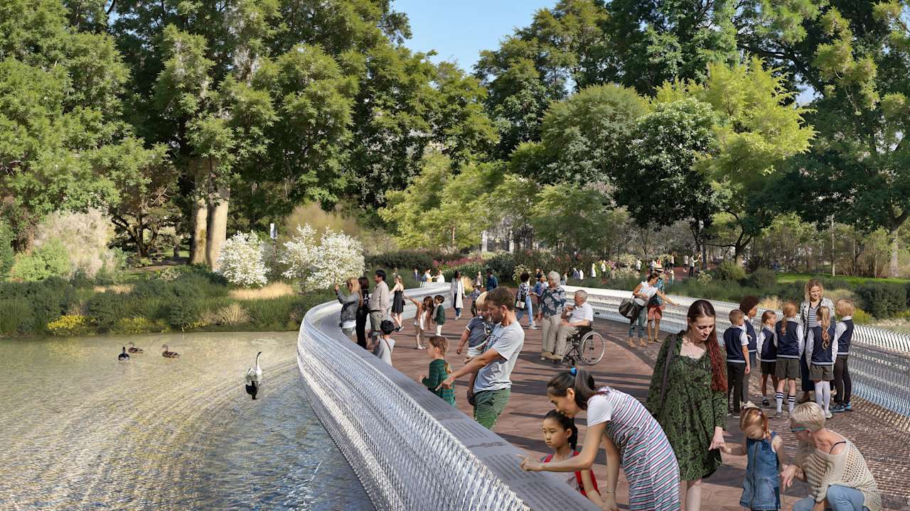 The new national memorial includes a replacement bridge across the St James’ Park lake inspired by her wedding tiara in 1947 and a new gate to remember her devoted husband and consort, Prince Philip.