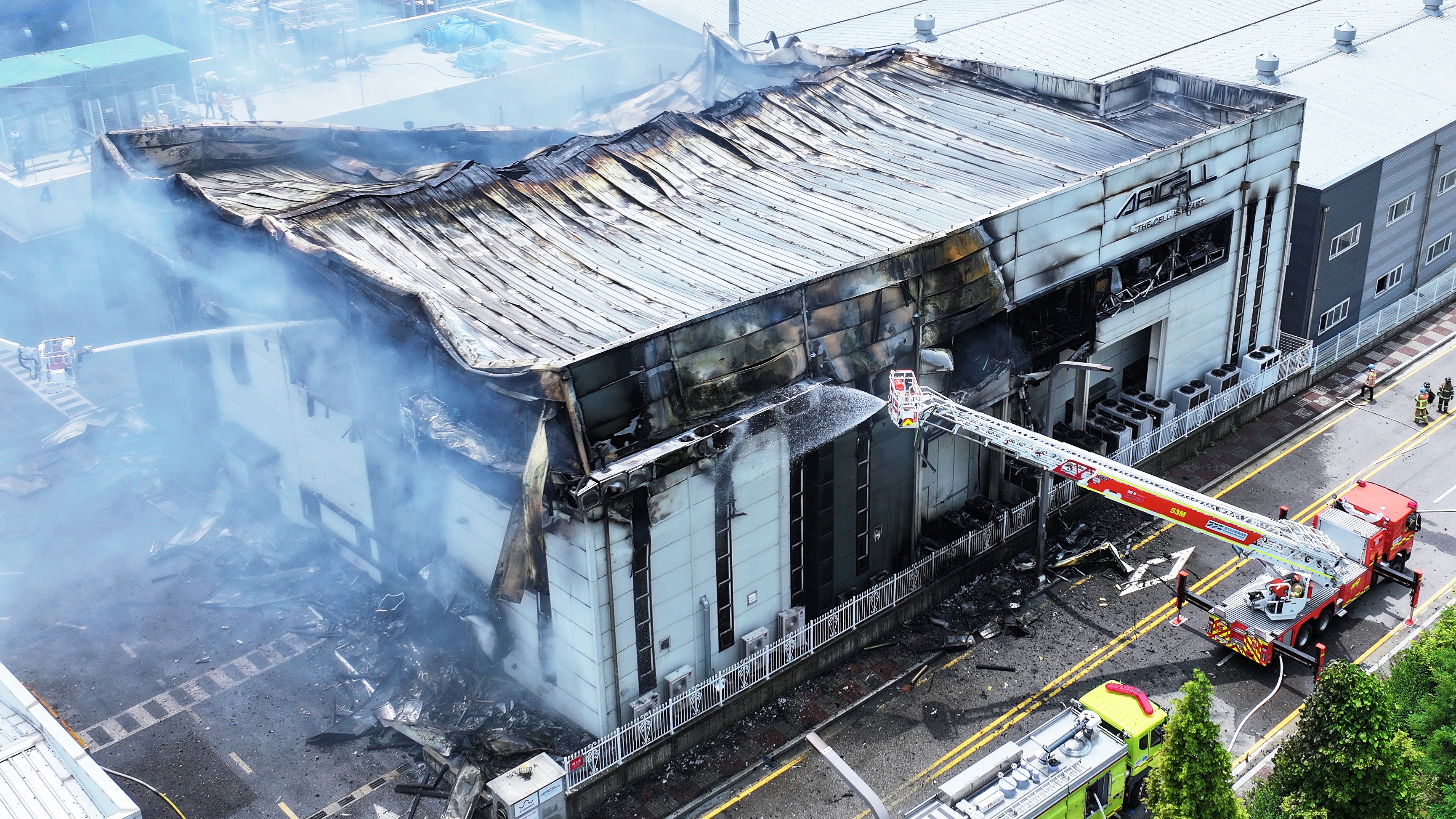 The fire started at one of the factory buildings owned by a company named Aricell.