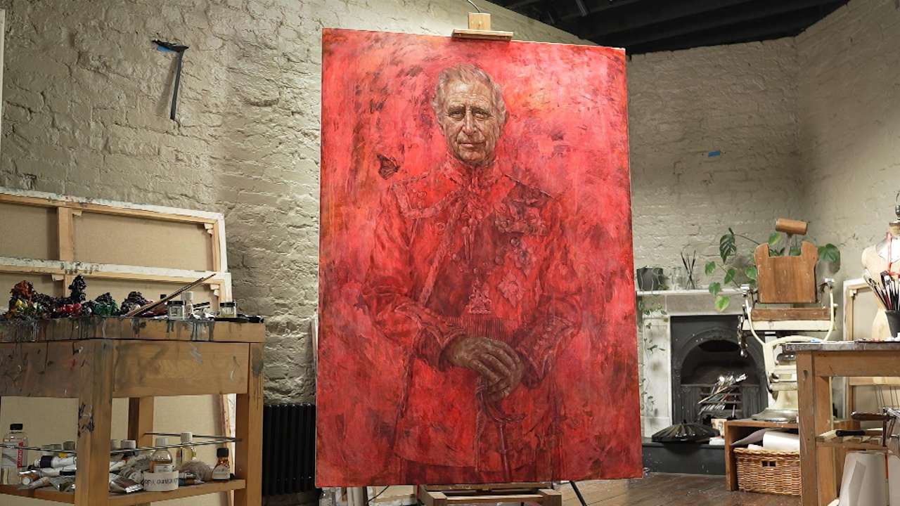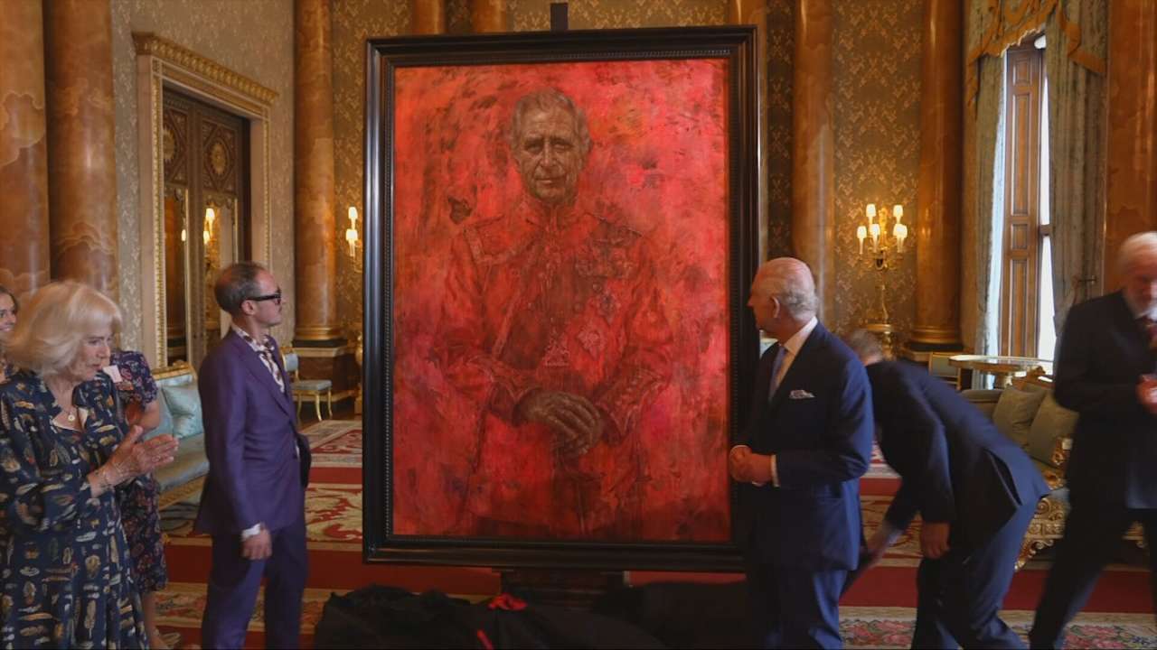 Watch the moment that the portrait of King Charles is unveiled