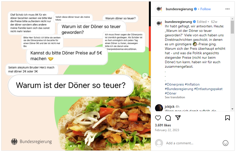 “We live in a market economy where prices are formed by supply and demand but of course also with regard to the costs incurred by those who produce a doner, for example.