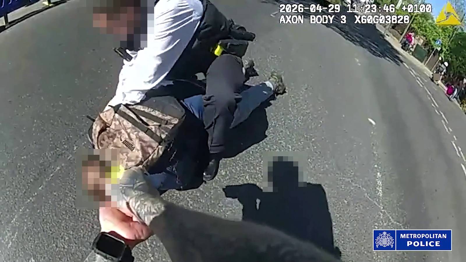 Body-worn footage released by the Metropolitan Police shows the moment their officers came face to face with the suspect, who could be seen walking towards them.