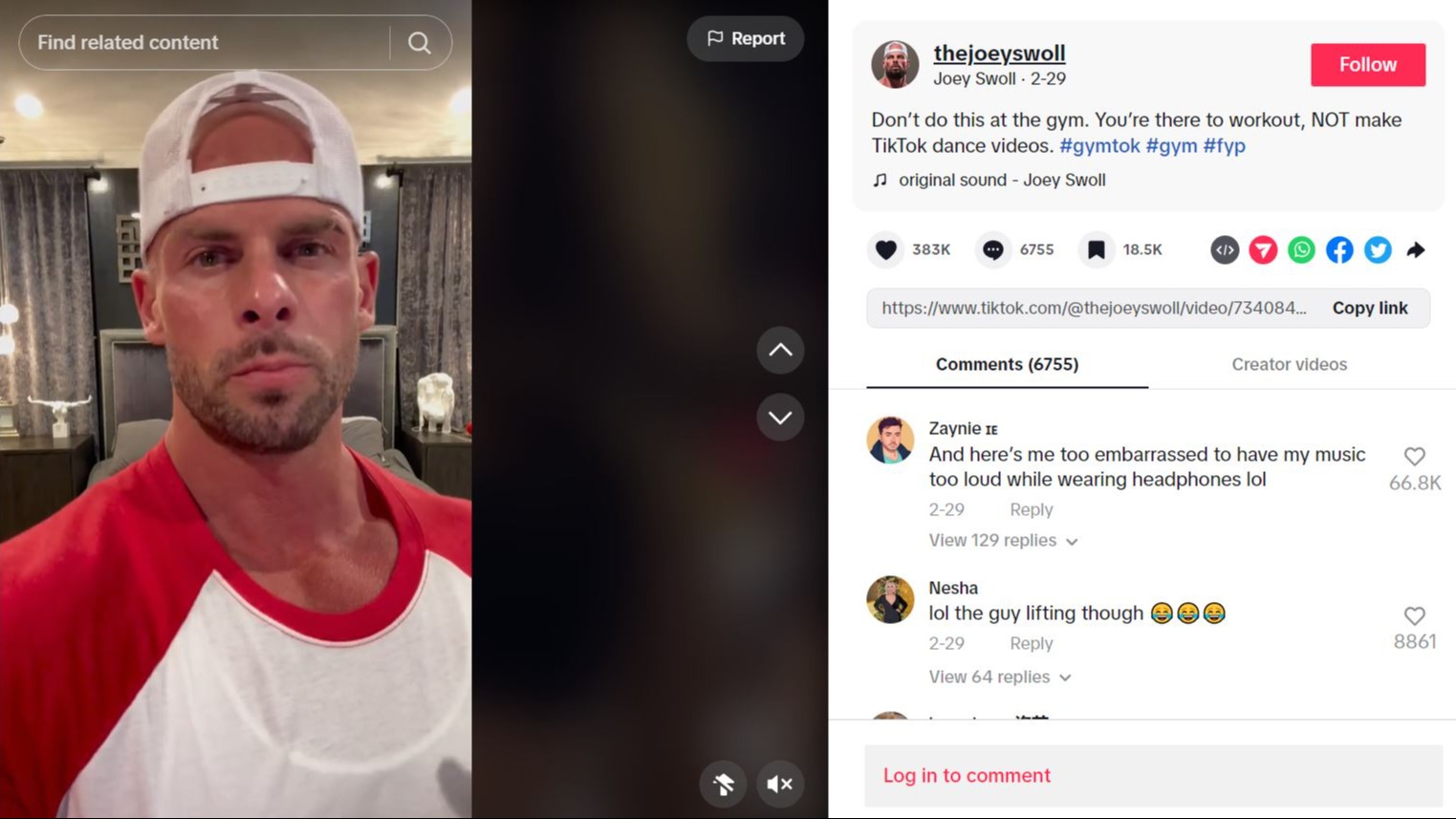Bodybuilder and fitness influencer Joey Swoll, who has over 7.6 million followers on TikTok and over four million on Instagram, shares regular videos criticising influencers for their behaviour in the gym.