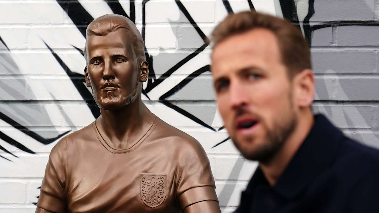 After years in storage following a rejection from Transport for London, the widely-mocked Harry Kane statue has been unveiled in London – and the footballer himself was there for the occasion.
