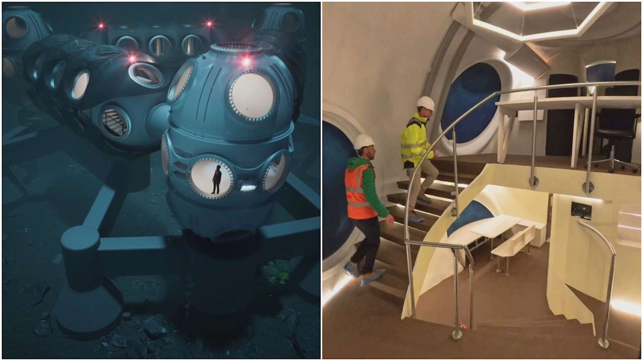 To withstand the pressure at depth the final structure will be 3D printed from steel. The different capsules can be connected together like Lego bricks. 150,000 hours of engineering have already been put into the project, including a full-scale plywood mock-up to test out living quarters.