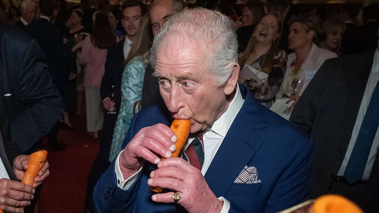 Watch King Charles play the carrot recorder with the London Vegetable Orchestra