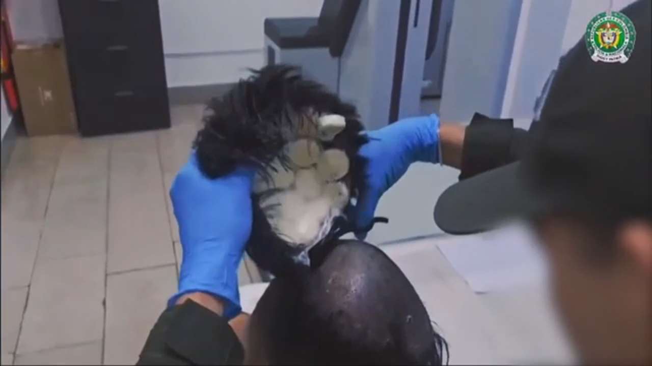 A Colombian man has been arrested for attempting to smuggle more than $10,400 (£8,290) worth of cocaine to the Netherlands by hiding it under his toupee.