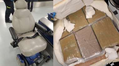 Border Force officers scanned the wheelchair and found 11 packages of cocaine, weighing 12kg, hidden in the seat and backrest, the National Crime Agency (NCA) said.