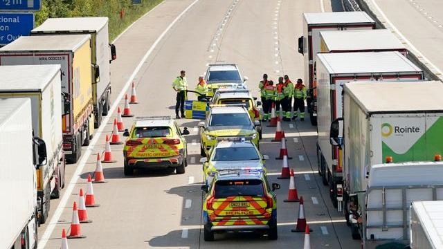 Kent Police said junctions eight and nine of the M20 were temporarily shut on Thursday due to the enhanced security checks – and to allow freight heading for mainland Europe to queue on the empty section of the motorway.