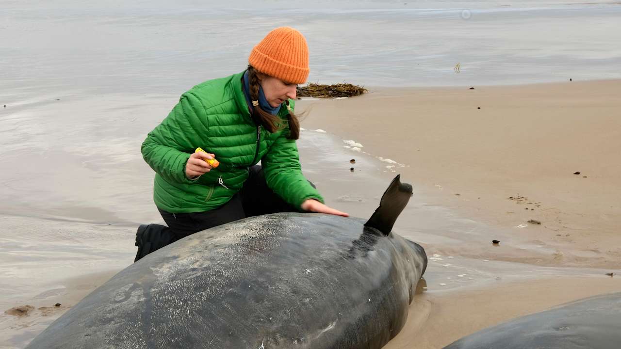 She said she had gone to the scene in the dark hours of the morning and returned after dawn but the whales were too big to attempt to refloat them.