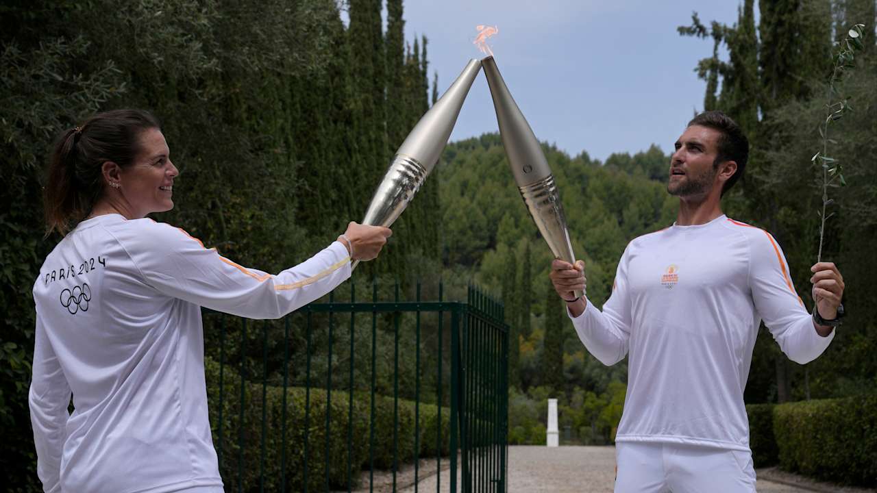 The first torchbearer was Greek rower Stefanos Douskos, a gold medalist in 2021 in Tokyo. He ran to a nearby monument that contains the heart of French Baron Pierre de Coubertin, the driving force behind the modern revival of the games.