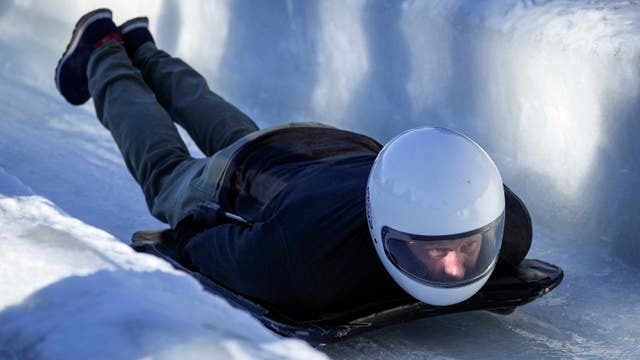 While at the training camp, the Duke of Sussex raced head first on a tiny skeleton sled down one of the world’s fasted bobsled tracks.