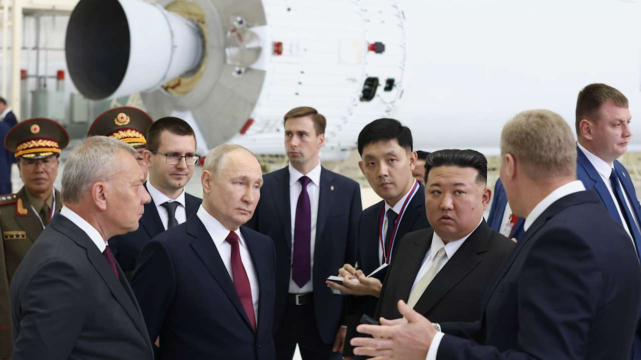 Putin welcomed Kim’s limousine, brought from Pyongyang in the North Korean leader’s special armored train, at the entrance to the launch facility with a handshake that lasted around 40 seconds. Putin said he was “very glad to see” Kim. Kim’s translator thanked Putin for the warm welcome, “despite being busy.”