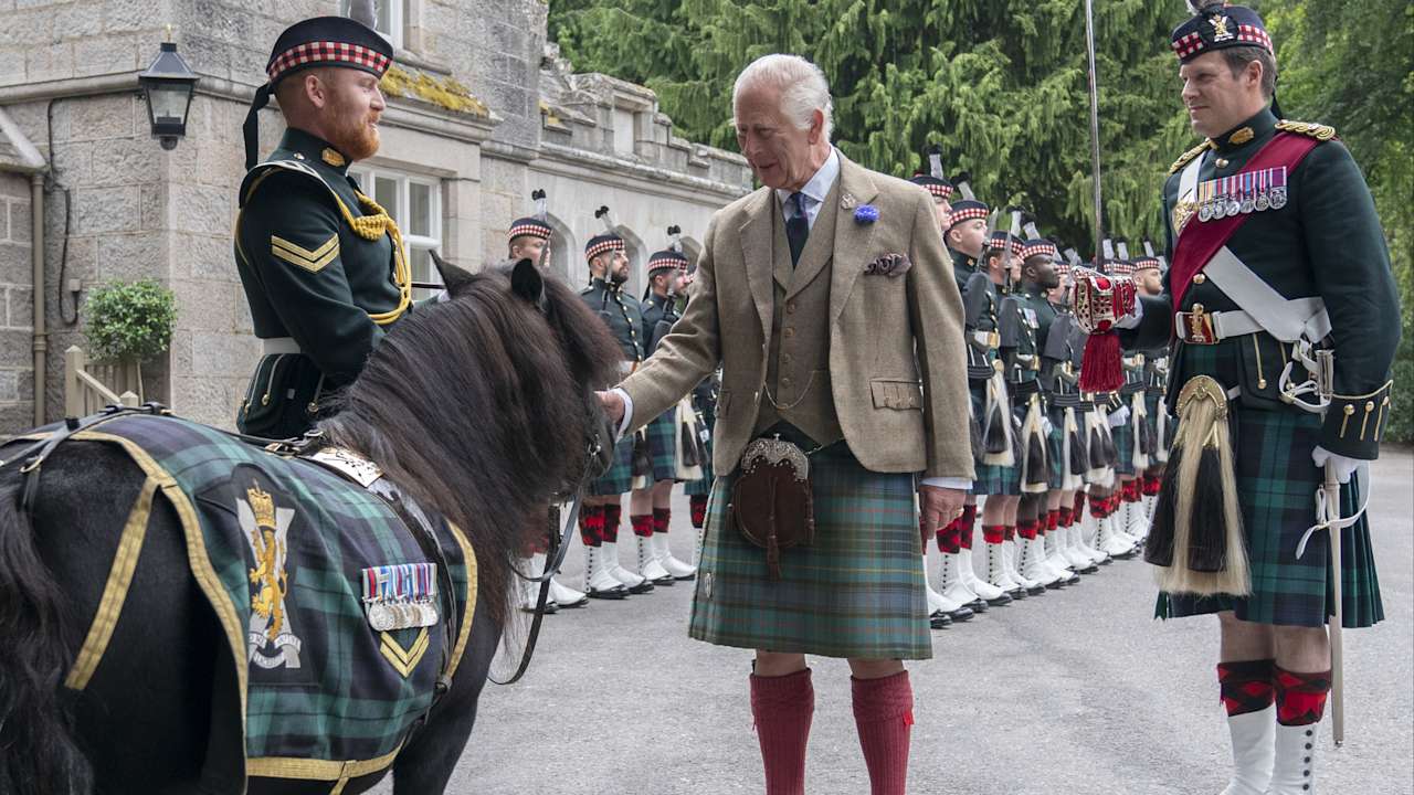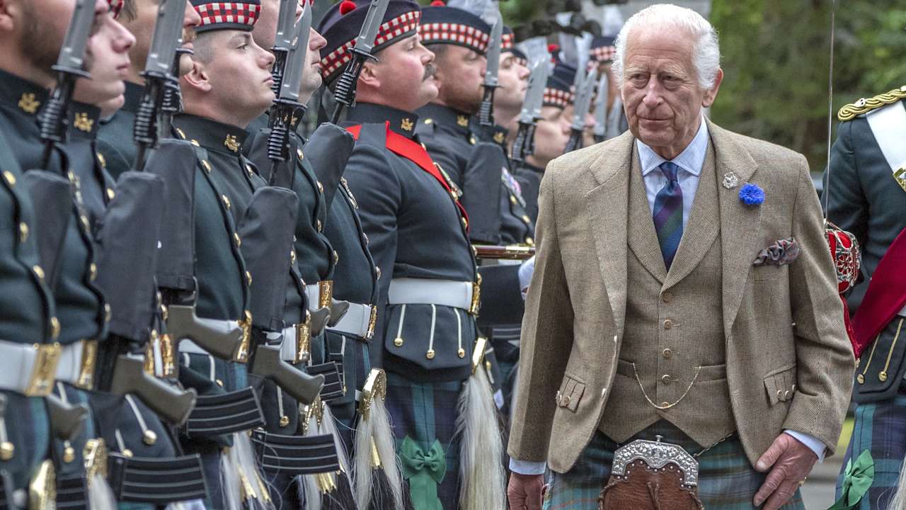 The King inspected a Guard of Honour formed by the Balaklava Company of the 5th Battalion Royal Regiment of Scotland in a small ceremony, which the late Queen also used to attend each year at the start of her summer stay.