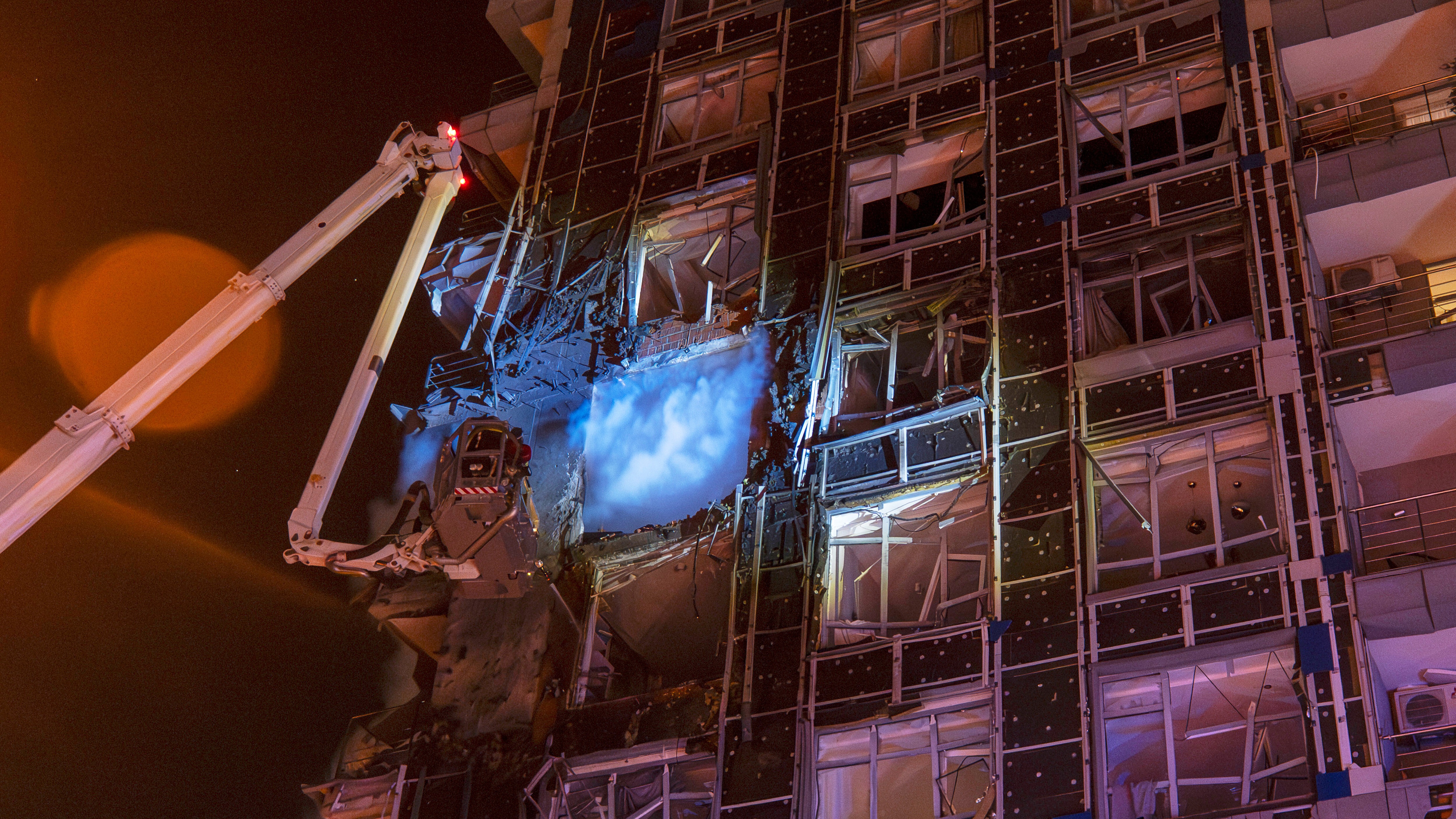 A residential building in the central Pechersk district and another in Kyiv’s eastern district of Dniprovskyi were badly damaged, Mayor Vitalii Kitschko said.