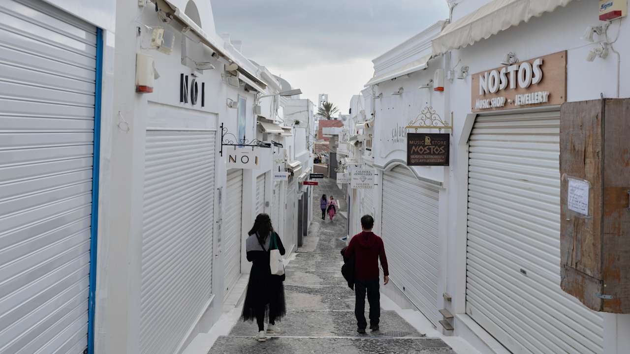 Schools have been closed across Santorini and the nearby Aegean Sea islands of Amorgos, Anafi and Ios.