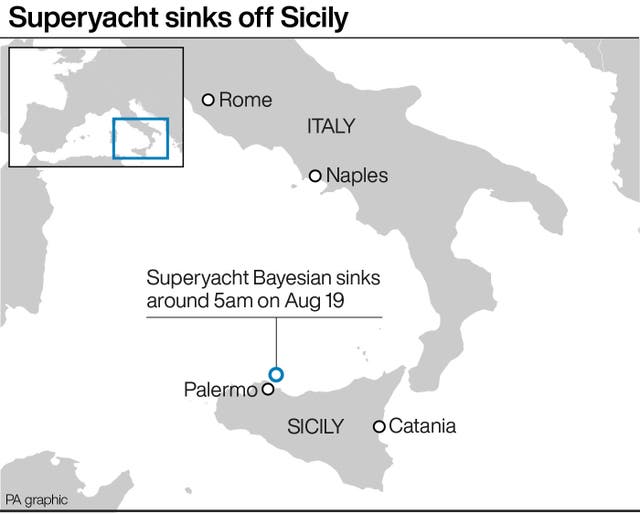 The British-flagged superyacht capsized at about 5am local time on Monday morning off the coast of Palermo when the area was hit by a tornado.