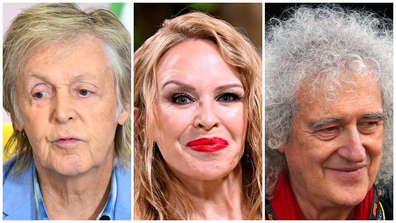 Sir Brian May, Kylie Minogue and and Sir Paul McCartney are among the host of famous faces to share festive well-wishes on Christmas Day.